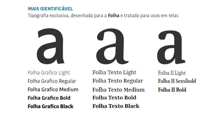 Segundo a própria matéria da Folha, as fontes foram criadas ou ajustadas para otimizar a visualização em tela além de melhor legibilidade, as adaptações proporcionam carregamento mais rápido de páginas, reduzindo o consumo de dados e melhorando a experiência do usuário.